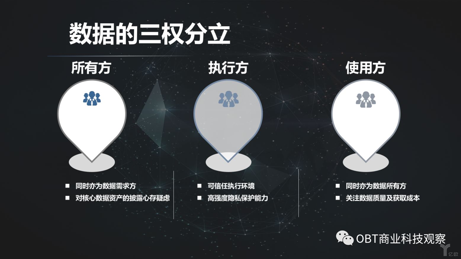 我们提的方法叫安全多方计算,数据在本地保存,无须先归集就可以做分析。在这里,分布式的密钥监管是可以分拆掉各方一起来算的结果,今年推出一个全新的计算平台JUGO,这个计算平台可以在这个平台上解决超过三方、多方大家一起算一个结果的问题,这个结果可以被调用和分享。