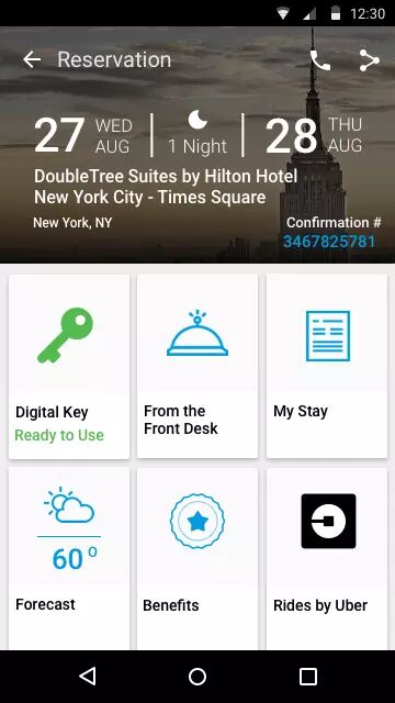所谓的数字密钥,指的是希尔顿 2014 年开始试行的一种虚拟钥匙。如果你想使用数字密钥,那你需要先下载希尔顿的 app 并登陆你的会员账号,在你的房间准备以后登记入住,随后 app 就会提醒说你已经获得了数字密钥。